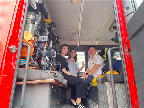 湯站長(zhǎng)向大家介紹了站點(diǎn)的基本情況。他表示,佘山消防救援站建成于2005年,配備了4個(gè)消防車庫(kù)、擁有一支42人的團(tuán)隊(duì),肩負(fù)著50平方公里轄區(qū)安全的重任。隨后,他詳細(xì)講解了消防車及車內(nèi)裝備相關(guān)知識(shí)。多功能水槍、無(wú)齒鋸、擴(kuò)張器、防化服、空氣呼吸器、鏟子、消防錘......每一件工具都有其不可替代的作用。