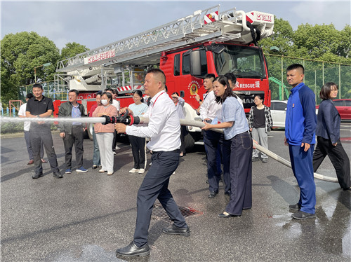 在消防員的指導(dǎo)下,企福天地黨支部黨員、腦智科研團(tuán)隊(duì)的老師們也親身體驗(yàn)了低樓層緩降、手抬泵出水原地射靶、消防救援服的穿脫等,切身感受了消防員的艱辛。